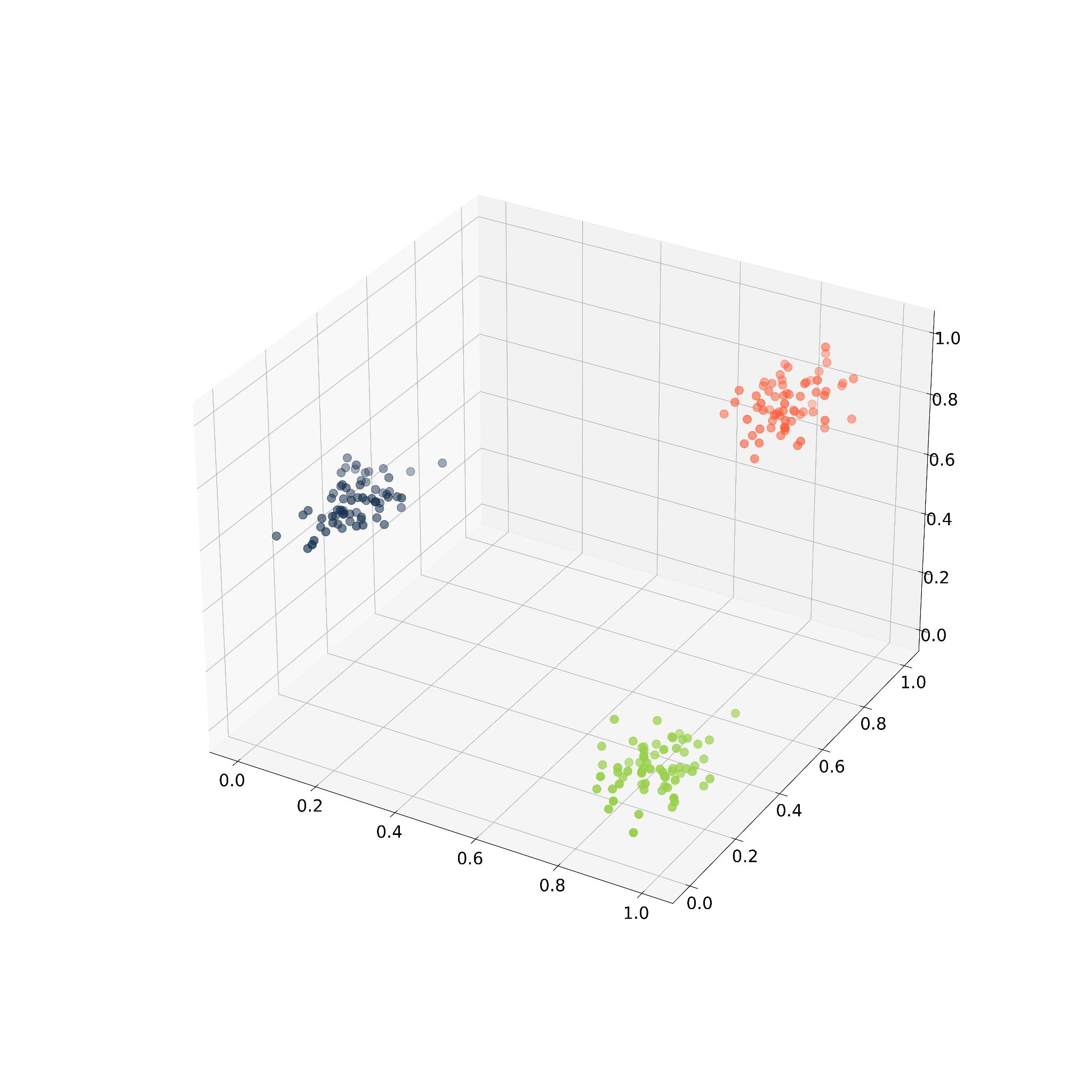 feature space (3D) reduced to lower dimensional subspace (2D)